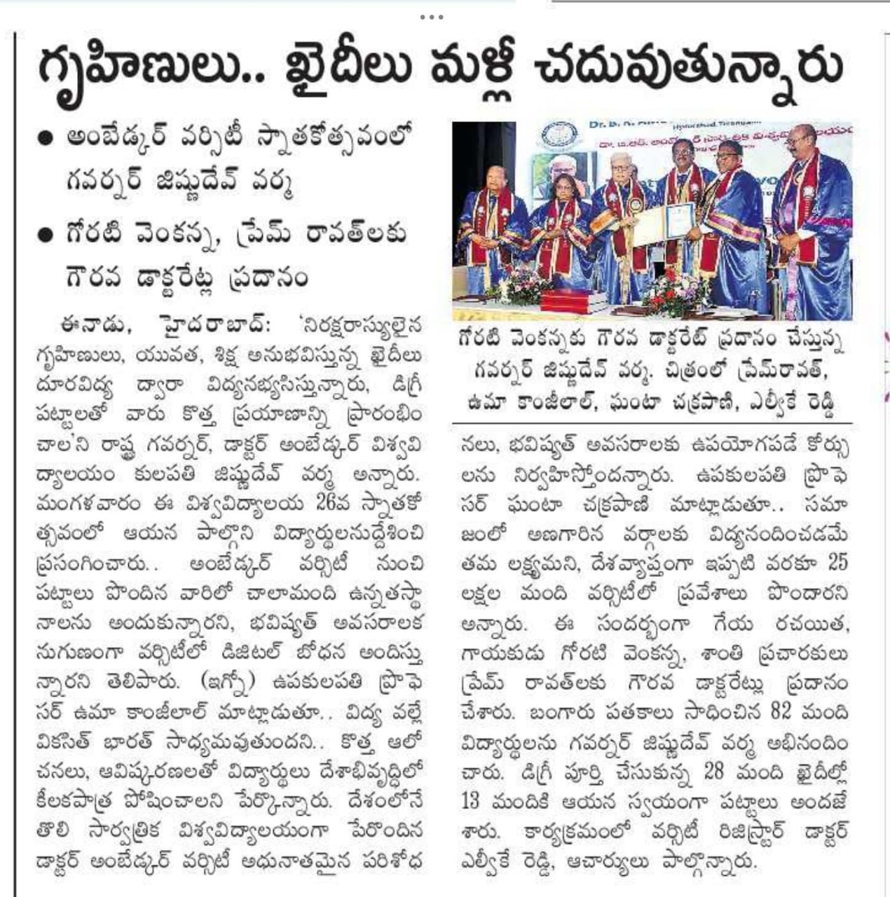 GORATI VENKANNA AWARDED HONORARY DOCTORATE.