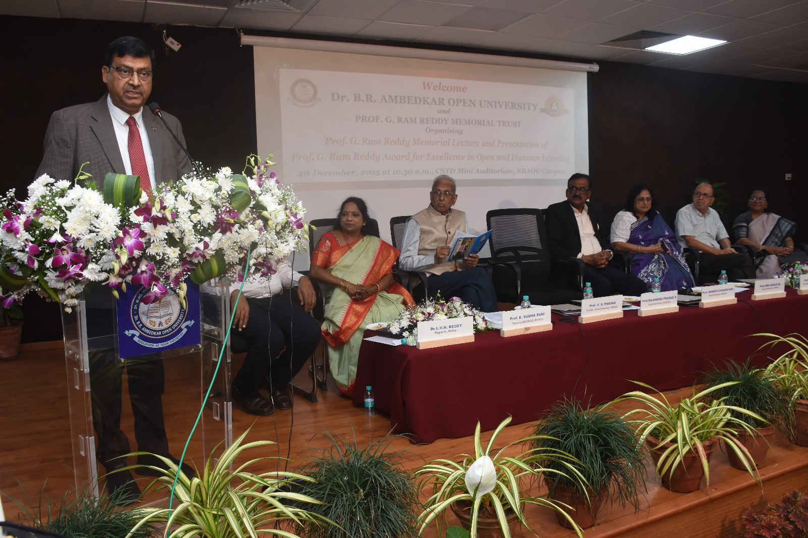 Dr. B. R. Ambedkar Open University (BRAOU) and Prof. G. Ram Reddy Memorial Trust, Hyderabad jointly organized Prof. G. Ram Reddy Memorial Lecture at the University campus as part of the 96th Birthday Celebrations of the founder Vice-Chancellor of BRAOU, Prof. G. Ram Reddy on 04-12-2025.