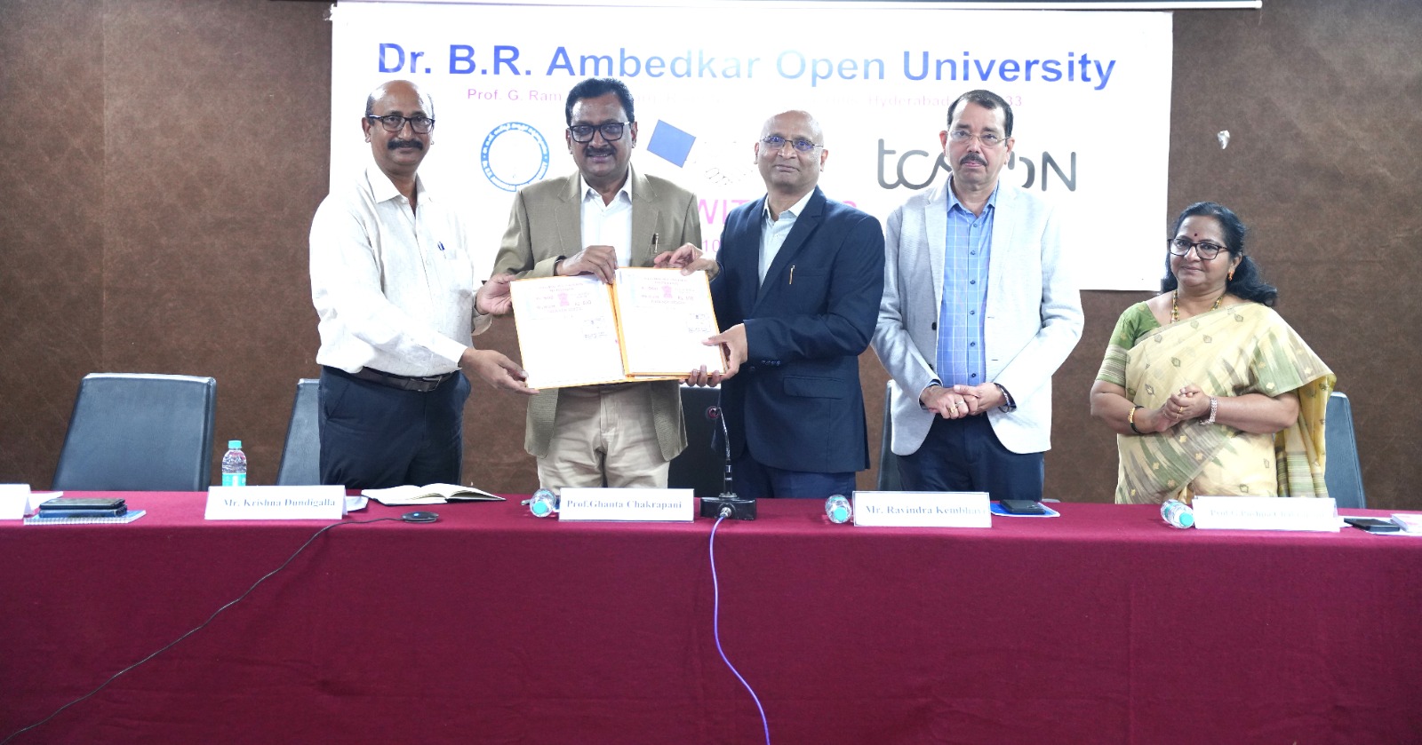 BRAOU/PR/115/2025 BRAOU AIM TO PROVIDE JOBS TO OUR STUDENTS - : V.C., Prof.Ghanta Chakrapani • BRAOU and TCSiON entered into an MoU Hyderabad, October 28, 2025: Dr. B.R. Ambedkar Open University (BRAOU) signed a Memorandum of Understanding (MoU) with Tata Consultancy Services (TCSiON), at its campus on Tuesday. The MoU was signed by the Registrar, Dr.L.Vijaya Krishna Reddy (BRAOU) and Krishna Dundigalla, TCS Executive Director (South India) along with other team of officials in the presence of Prof Ghanta Chakrapani, Vice-Chancellor, BRAOU. Prof. Ghanta Chakrapani, Vice Chancellor said Dr. B.R. Ambedkar open University sign an MoU to offered “BRAOU-TCSiON Integrated Job Achievement Program” is open for all students admitted into B.A/B.Com/B.Sc Degree Programs from the Academic Year 2025-26. This program will be offered “ONLINE TCSiON Digital Learning Hub” the Learning Management System of TCS with an English medium only.He revealed that there will be specially recorded videos with experts, discussion forums with doubt clearing, live chat, industry assignments, modular practice packages, setting up industry projects with mentoring, etc. After the completion program, more than 70% of students get the job opportunity in various Multinational Companies. Prof Ghanta Chakrapani revealed that the aim is to provide the necessary skills to the students at the global level. He explained that this agreement will be very useful in improving the skills of the students and providing job and employment opportunities. Prof.G. Pushpa Chakrapani, Director Academic; Dr.L.Vijya Krishna Reddy, Registrar; Prof. Rabindranath Solomon, Director EMR&RC; Prof. Pallavi Kabde, Coordinator, Skill Development and Vocational Training Centre; Other Directors and deans from BRAOU and TCS Officials Ravindra Kembhavi, Leena Tipre, Satish and other team members were participated on the occasion.