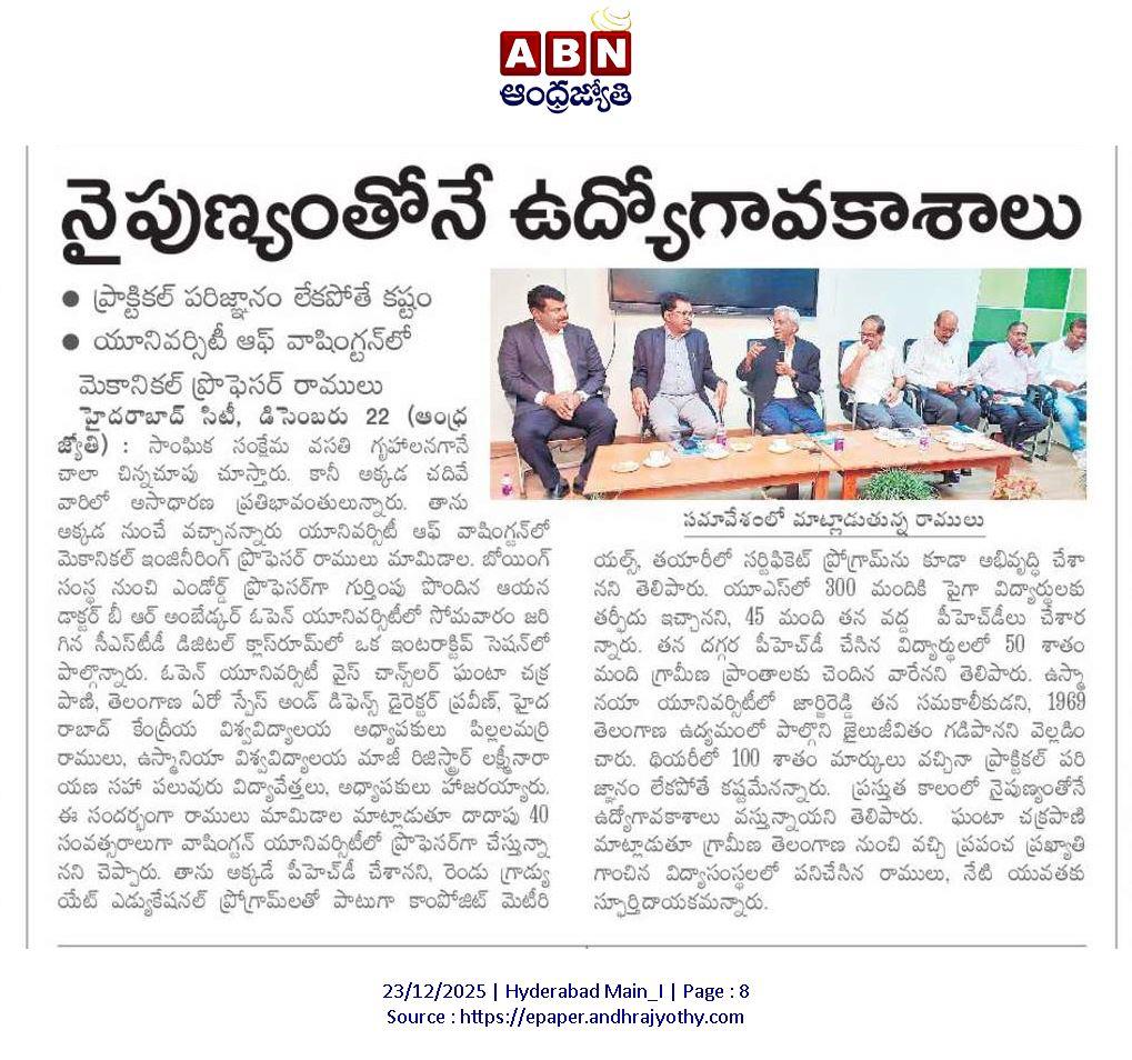PRINT MEDIA IN CRISIS -: Devulapalli Amar · BRAOU organised Prof. S. Bashiruddin Memorial Lecture Hyderabad, February 6, 2025: Dr. B. R. Ambedkar Open University (BRAOU) organized Prof. S. Bashiruddin Memorial Lecture at its campus as part of 89th Birth anniversary of Prof. S. Bashiruddin, Former Vice-Chancellor on Thursday.